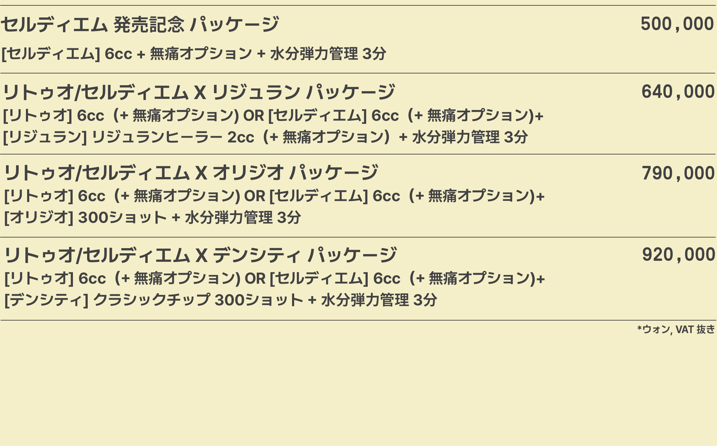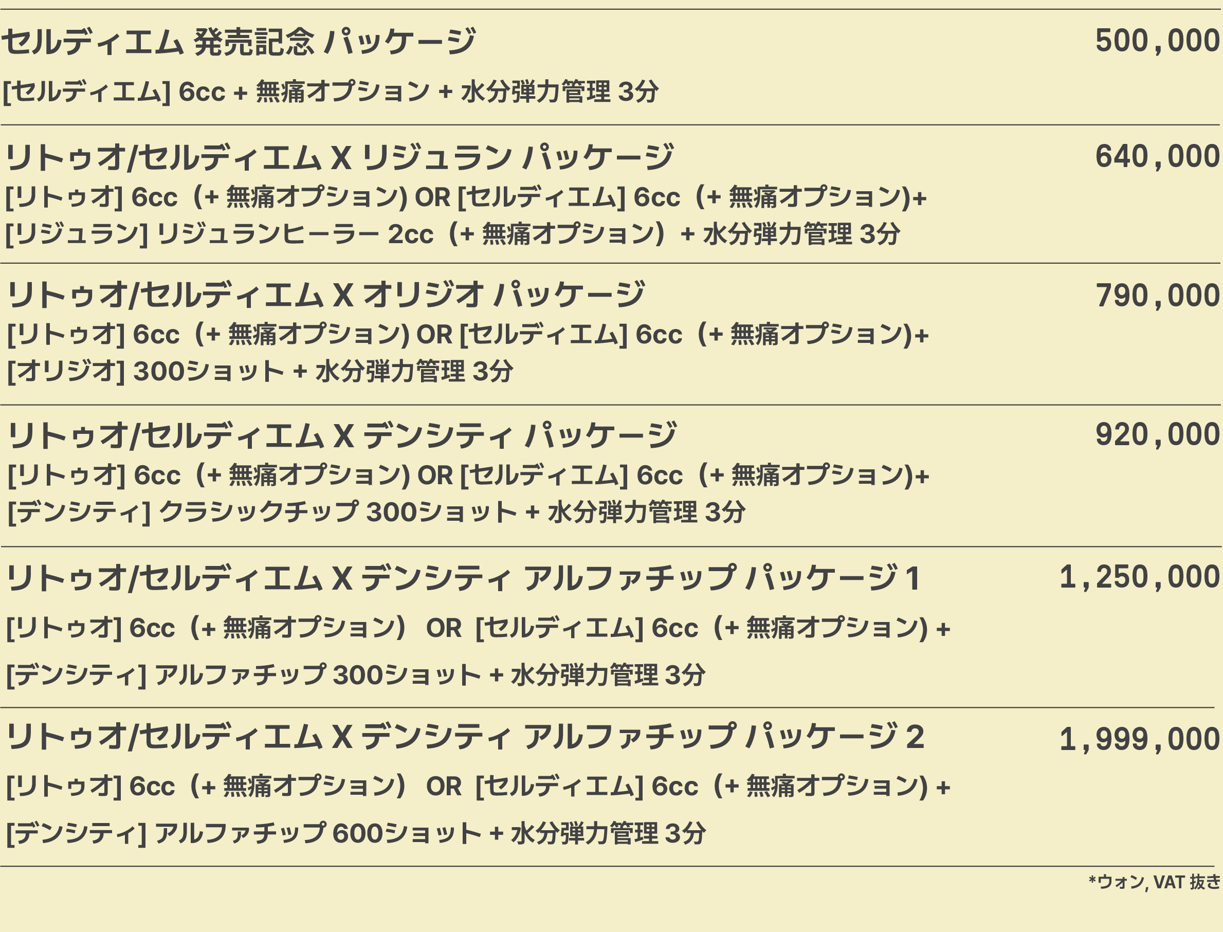 リトゥオ/セルディエムキャンペーン デンシティ新規導入キャンペーン テシト人気施術 テシト人気施術 スキンブースタープログラム にきび/傷跡/毛穴プログラム 弾力/リフティングプログラム フィラー/ボリュームプログラム ボトックスプログラム ボトックスプログラム(ボディ/スキン/多汗症) 輪郭注射/肥満プログラム 美白/色素/紅潮(赤み)/スキンケア/ ピーリングプログラム イベントパッケージプログラム にきび/傷跡/毛穴パッケージプログラム 弾力/リフティング/色素/赤ら顔パッケージプログラム
